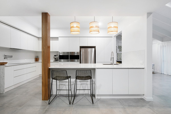 For joinery, doors and trims, Resene Lustacryl Kitchen & Bathroom in Half Alabaster was chosen to maintain continuity while providing a tough enamel finish that resists yellowing and is suitable for wet areas.