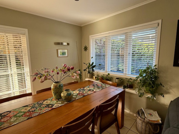 Tanja also painted her dining space in Resene Linen, a neutral with an earthy green edge, and the ceiling in Alabaster.