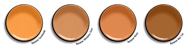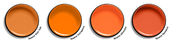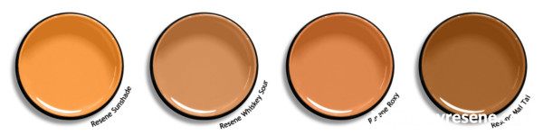 If you’re looking for some golden oranges to pair with blue, try Resene Sunshade, Resene Whiskey Sour, Resene Roxy and Resene Mai Tai.