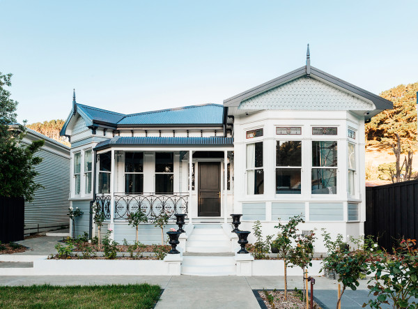 Keeping colour palettes simple on villas and heritage homes allows the character and details to really shine. As an example, try a neutral palette of Resene Concrete in varying strengths, or muted tones with contrasting hues on trims and fretwork, like Half Duck Egg Blue and Innocence.
