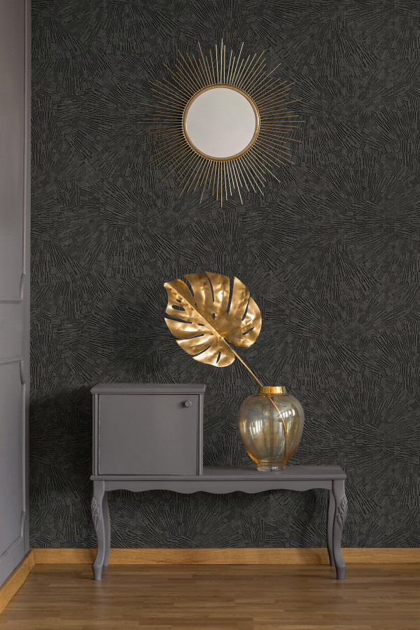 If black hues are your thing, look to a slightly more trending tone of deep earthy browns. You can also add some texture to your space by finding these hues in your favourite wallpaper design. In this space, Resene Mata Hari Wallpaper Collection AS382035 pairs beautifully with the warm wood, gold accents and Resene Jimmy Dean hues on furniture.