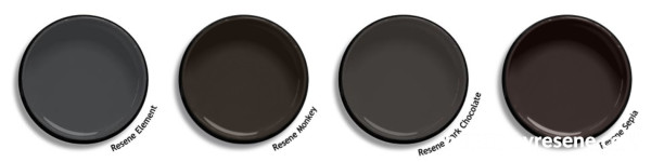 Lastly, Megan says that black walls still have a place, but they have softened from sharper manmade pigments to more organic pigments with a brown cast, almost like black chocolate. Look to Resene Element, Monkey, Dark Chocolate and Sepia.