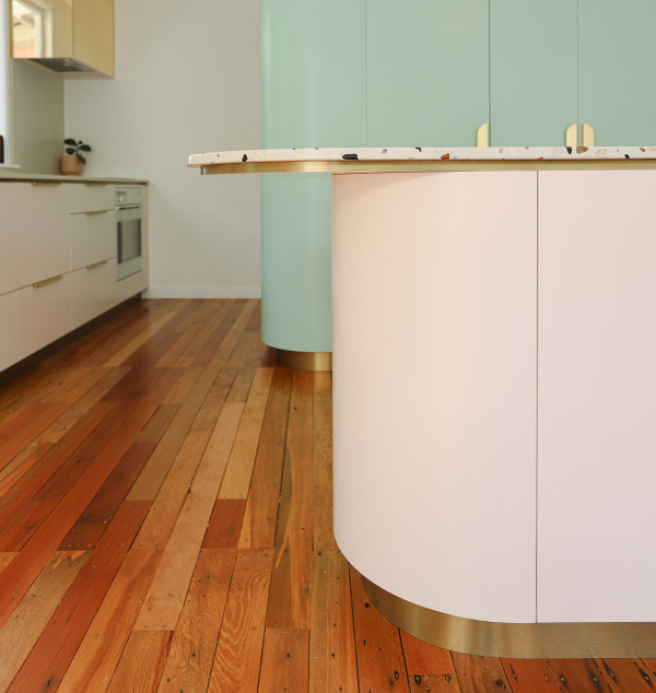 “The goal of renovating the 1920s pink art deco home, was to enhance and complement its classic luscious curves, exterior colour scheme and the creative owners,” says interior designer Fiona Vidar. Rather than treating the renovation like a blank slate, Fiona leaned into the home’s existing details and used them as a roadmap, weaving exterior cues into the interior so it all feels connected and intentional.