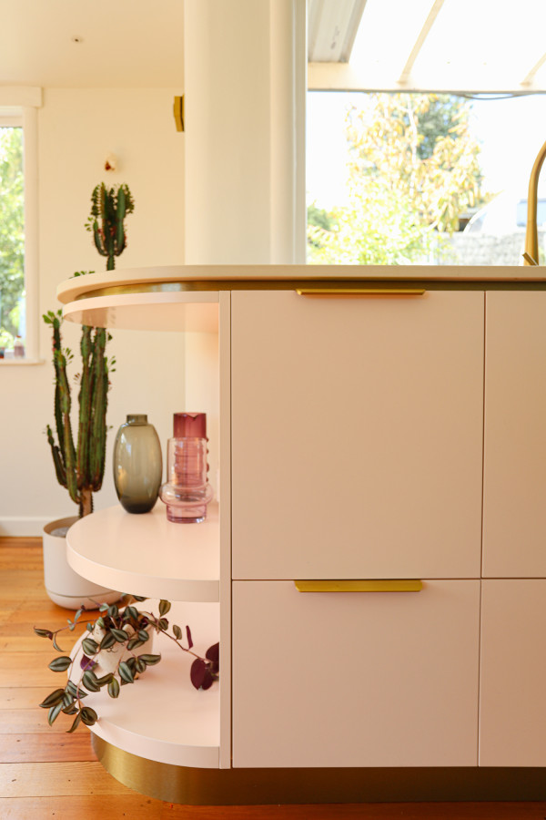 “I incorporated many exterior details into the kitchen design, including the entrance terrazzo, colours, metallics and the classic curves.” This is a home that feels cohesive from room to room, but the kitchen is undeniably the hero. It’s functional, but also full of charm, a little theatrical and completely unafraid of colour – which of course, we love.