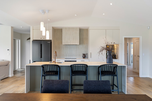 For kitchens, panelled islands add an extra allure compared to plain surfaces. When painted in a contrasting shade they can also work to zone off the kitchen from other areas, especially in open-plan spaces. Try the muted grey-green of Resene Blue Smoke, or other nature-inspired shades like Ravine and Conch. These walls are painted in Albescent White from the Karen Walker Paints range and the ceiling is in Alabaster.