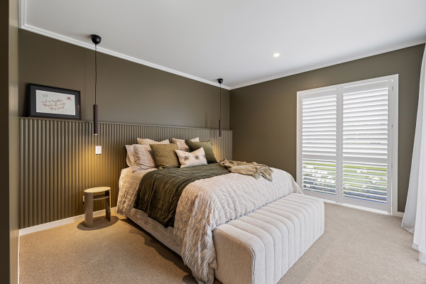 Feature panelling has become a trend in home design over the last few years, and it’s nothing new, but we are loving it as a way of adding texture and interest to a space. We’re also seeing a rise in darker, cocooning shades, especially in bedrooms such as this one, painted in the deep, earthy Resene Lisbon Brown. Trims are painted in Quarter Albescent White from the Karen Walker Paints range and ceiling in Alabaster for a crisp contrast. Décor and bedding in similar shades create a cohesive look.