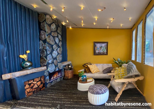 Esra Cakir Fuller created her dream coastal home for her teeny house including a relaxing bedroom space with walls in Resene Sea Fog and barn doors in Resene Yes Please. The judges loved this home’s cohesive seaside theme and great use of blues and whites. “Yes Please, I’d love this bedroom at my dream bach,” said one of the judges.